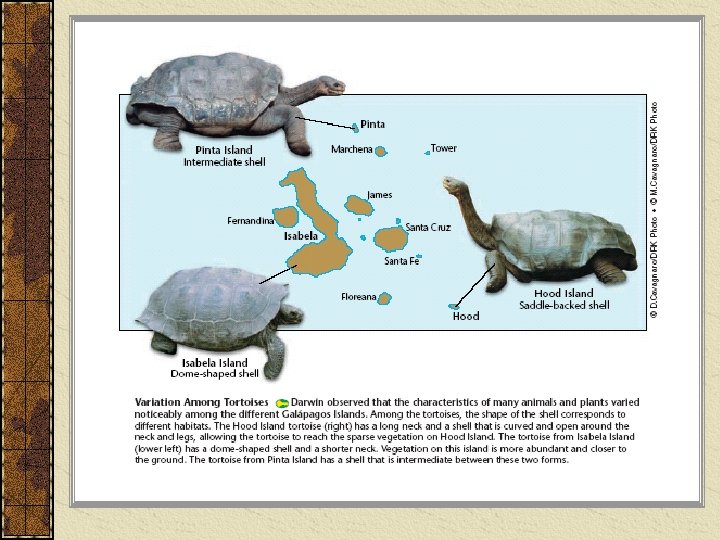 Species Vary Locally Different, yet related, animals occupied different habitats within a local area Exs. – Tortoises and Birds in the Galapagos Islands varied from island to island