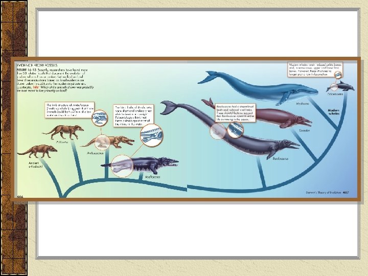 The Age of Earth and Fossils Recent Fossil Finds – During Darwin’s time, not enough intermediate fossils had been found to document the evolution of modern species from their ancestors – Since Darwin, paleontologists have discovered hundreds of fossils that identify intermediate stages in the evolution of many different groups of modern species – Exs: • Whales • Dinosaurs Birds • Fish Four-Legged Animals