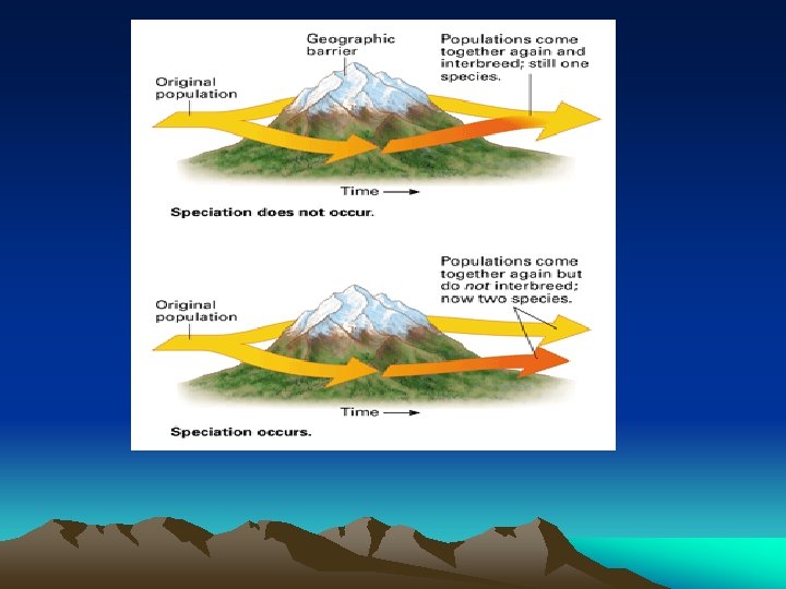Do all isolated populations survive and become new species? • No , not all isolated populations survive and become new species. • Speciation only occurs if the two populations can no longer interbreed Not all isolated populations survive and become new species. with each other. • Figure 15. 6 model- pg 328.