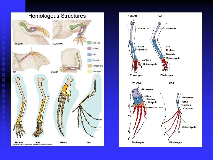 Evidence of Evolution n Homologous Structures u structures that have different mature forms in different organisms, but develop from the same embryonic tissue