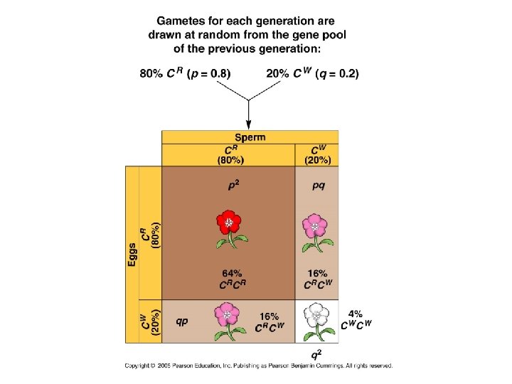 Condition for Hardy – Weinberg equation: 1. Large population 2. No evolution: Population is stabilized, in equilibrium • • • No genetic drift No gene flow No mutation No non-random mating No natural selection