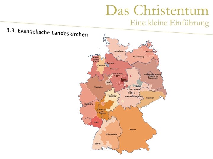 Lutheraner -> Martin Luther Reformierte -> Huldrich Zwingli, Jean Calvin EKD und Landeskirchen