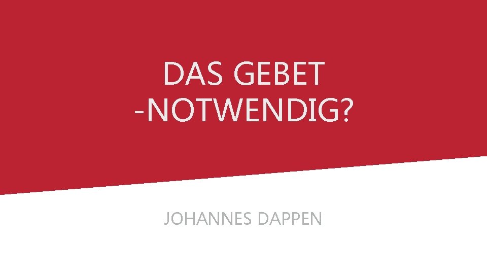 DAS GEBET -NOTWENDIG? JOHANNES DAPPEN