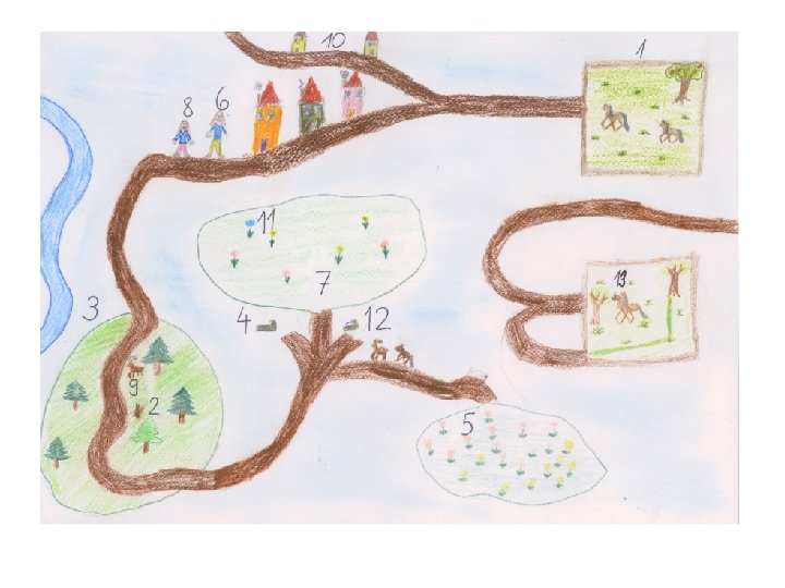 1 Es war einmal eine Stute. Diese bekam bald ein Fohlen. Am nächsten Tag kam das Fohlen zur Welt. Auf einer eingezäunten Wiese mit einem Birnenbaum springt das Fohlen fleissig herum. Schon bald hat es Lust eine Reise zu unternehmen. Da machte es das Gatter auf. Es ging einen waagrechten Weg, der sich bald verzweigte. Es ging den Weg, an dem 3 Häuser sind, entlang. Da begegnete es einem Kind. Plan
