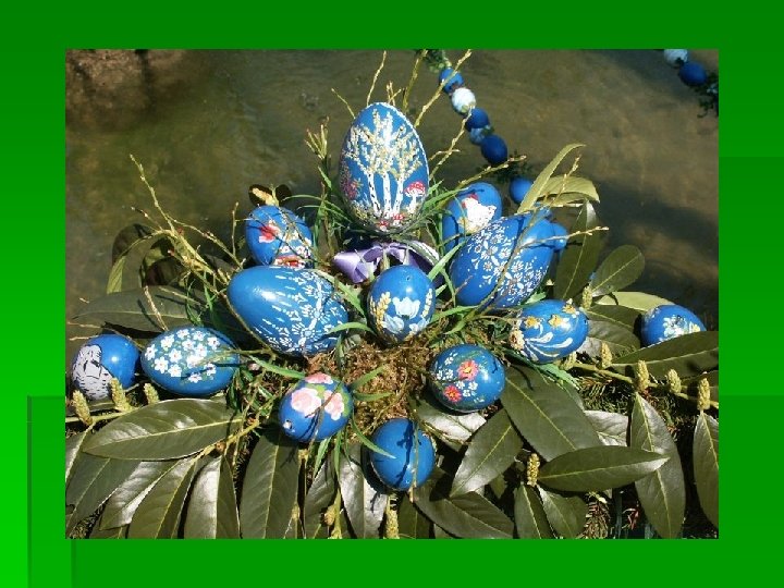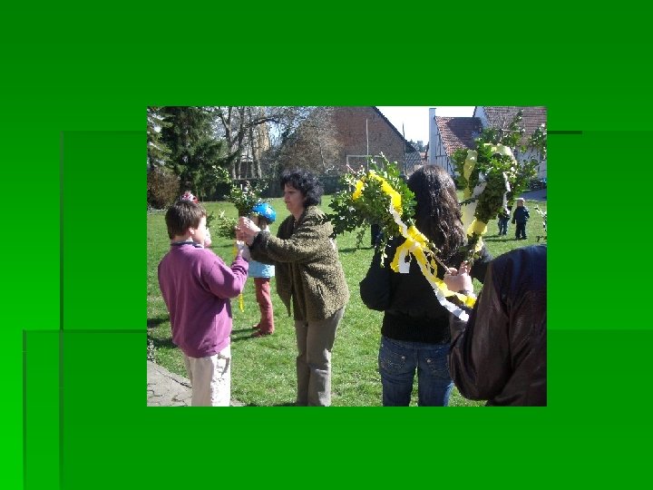 der Osterstrauß § In vielen christlichen Familien und Kindergärten wird in der Osterzeit ein Osterstrauß aufgestellt. Birken-, Haselnusszweige oder Palmkätzchen werden mit bunten Eiern und farbigen Bändern geschmückt.