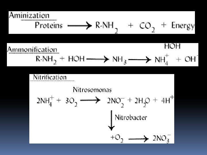 Faktor Mempengaruhi Konversi NH 4+ ke NO 3 Suhu tanah p. H tanah (nitrifikasi lambat pada p. H 5. 8 - 6. 0) Aerasi tanah - O 2 diperlukan untuk konversi Air tanah – tdk terjadi nitrifikasi jika tanah jenuh air atau sangat kering. Konsentrasi NH 4+ dan adanya organisme nitrifikasi Rasio C/N tinggi.