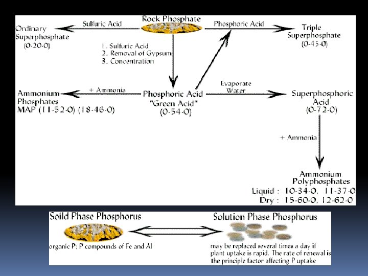 Bentuk P tanah P organik 30 - 50% dari P total dalam tanah dalam bentuk bahan organik Rasio C: N: P dalam bahan organik tanah sekitar 100 - 10 -1. P anorganik Mineral tanah - apatit [ Ca 3(PO 4)2] * Ca. F 2 Hidroksida Fe dan Al – pada tanah masam, P bereaksi dengan Fe dan Al tidak larut dan tidak tersedia bagi tanaman; “fiksasi P “ (problem utama pada tanah masam) Kalsium Phosphate dibentuk dalam tanah dengan p. H > 7. Phosphor dalam larutan tanah Konsentrasi rendah 0. 05 to 0. 2 ppm Konsentrasi larutan dipengaruhi oleh kelarutan dan jumlah fase padat
