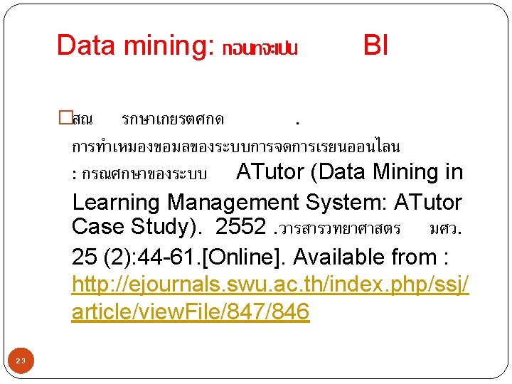 สาธตระบบ BI & Data Science ATutor http: //ejournals. swu. ac. th/index. php/ssj/ article/view. File/847/846 �Data Model �Reports �OLAP Cube �Dashboard �วเคราะหการใชงานระบบ 49