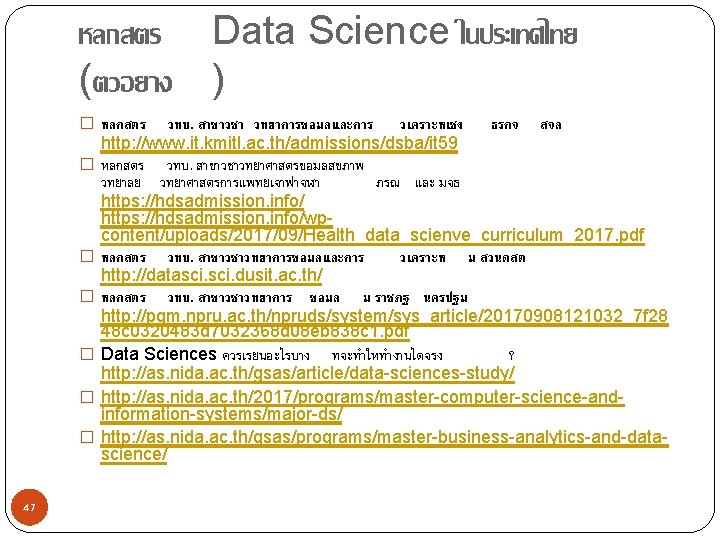 ศาสตรทเกยวของ http: //www. unomaha. edu/college-of-arts-andsciences/mathematics/community-engagement/data-science. php 43