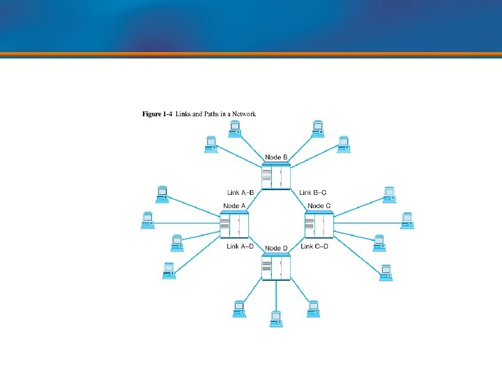 Key Data Communication Concepts t Session: communication dialog between network users or applications t Network: interconnected group of computers and communication devices t Node: a network-attached computer t Link: connects adjacent nodes (see Figure 1 -4) t Path: end-to-end route within a network t Circuit: the conduit over which data travels t Packetizing: dividing messages into fixed-length packets prior to transmission over a network’s communication media t Routing: determining a message’s path from sending to receiving nodes.