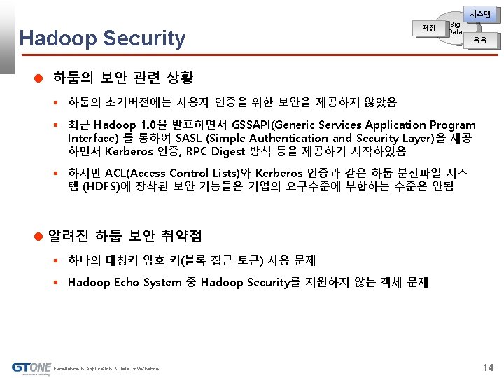 (Open Source based) Hadoop Realization Architecture Excellence in Application & Data Governance 시스템 저장 Big Data 응용 13