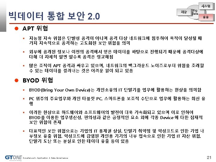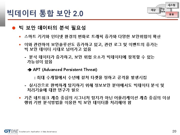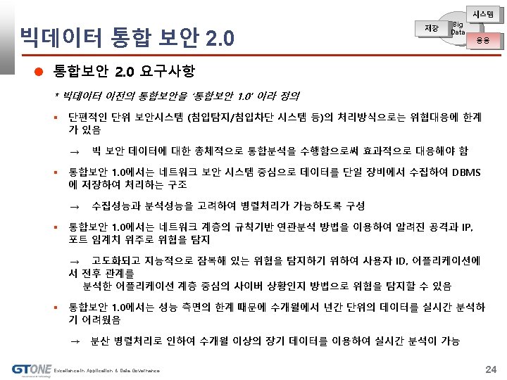 시스템 빅데이터 통합 보안 2. 0 Excellence in Application & Data Governance 저장 Big Data 응용 23