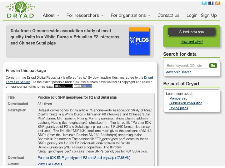 Placing data in a repository • • Long-term commitment to data preservation Higher visibility for your data Permanent URL / DOI enables data citation Reuse tracking and usage statistics