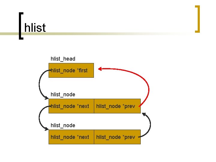 hlist_head hlist_node *first hlist_node *next hlist_node **prev
