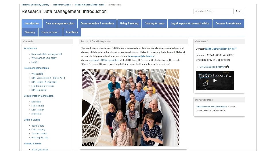 Data Sup port at University of Helsinki Central Archives Data protection Data Support datasupport@helsinki. fi IT services Legal Affairs Library Niku Research Affairs More information: https: //www. helsinki. fi/en/research/university-of-helsinki-datasupport