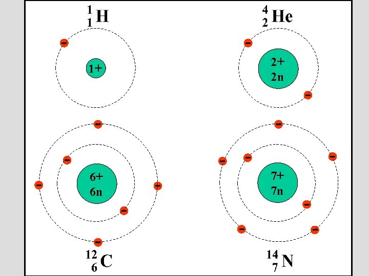 El átomo de Carbono-12 Protón n Neutrón nº de protones = nº de electrones n+ Electrón 6 6 n +6 6 X C A Z X 12 6 C