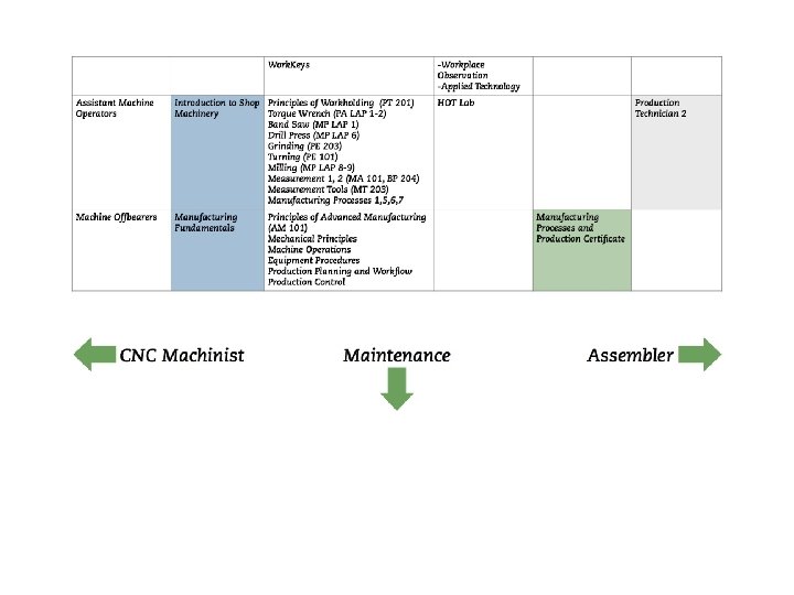 Applications: Curriculum Planning • Whether you are a curriculum planner in an education setting or a program planner in a one-stop center, the information on skills gaps between levels on the pathways is invaluable. • The charts that accompany the diagrams and which show the gaps in knowledge, skills, and abilities point to places where new curriculum needs to be developed or where training services need to be procured. • We have worked on a Skills Acquisition Map for each pathway.
