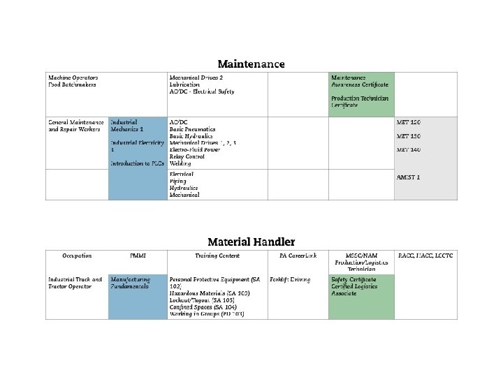 Production Industrial Machinery Mechanic Printing Press Operator Industrial Truck and Tractor Operator • AAS in Mechatronics Engineering Technology • Mechatronics (Advanced Manufacturing/Integrated Systems Technology) • Certified Apprenticeship • Production Technician Certificate • Operators’ Certificate • Hot Lab • Printing 101 • Blueprint Reading • Maintenance Basics • Forklift/OSHA certification • Serv. Safe
