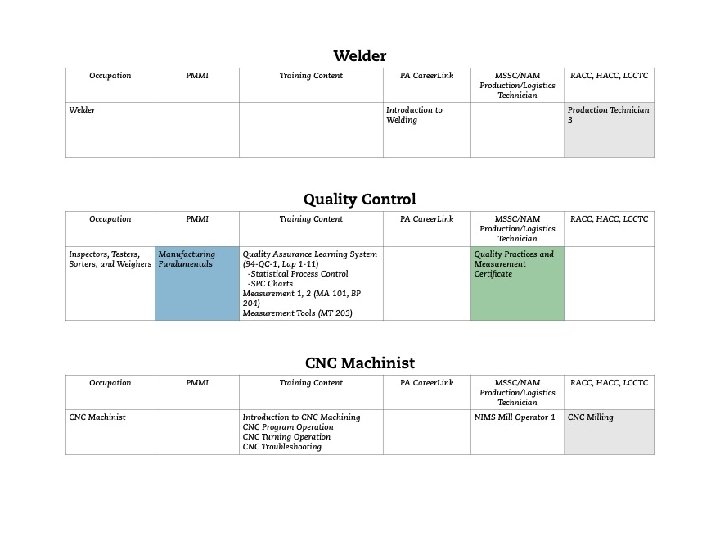 Production • Laborers • General Maintenance and Repair Workers • Helpers-Production Workers • Industrial Truck and Tractor Operators • Printing Press Operators • Mechanical Engineers • Automotive Service Techs • Structural Metal Fabricators • Industrial Engineers • Farmers and Ranchers • First-Line Supervisors of Production Workers • Food Batchmakers • Inspectors, Testers, Sorters • Industrial Machinery Mechanics • Machinists • Welders • Heavy and Tractor Trailer Truck Drivers • Machine Feeders and Offbearers