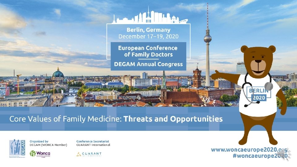 DATE, VENUE • Theme: „Core Values of Family Medicine: Threats and Opportunities“ • New Date: December 17 -19 th, 2020 • Venue: Hub 27, Berlin, Germany • Innovative session formats: Science slam, Case presentation by young doctors, Workshop report from the practice, State of the art sessions • Engaging delegates • Easy English as the official language
