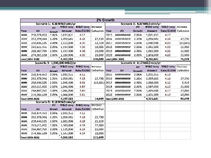 Levy Options – Amount of Levy • Keep tax rate “level” • Keep $ amount of levy “level” • Balancing the needs of the school district with the current economic environment…
