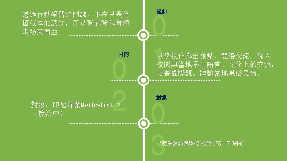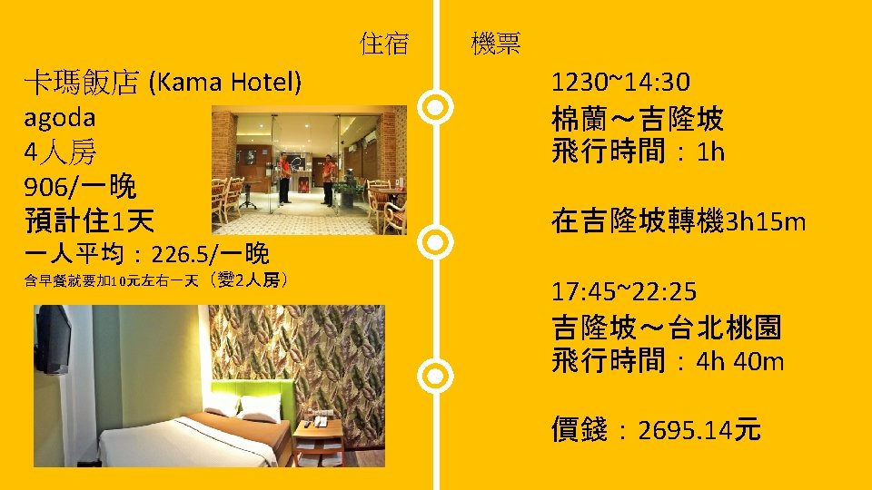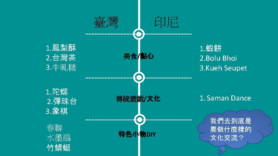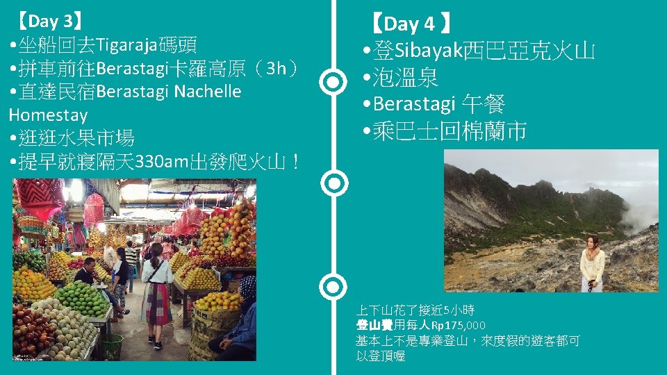 Day 1 Kuala Namu Parapat Tigaraja Samosir Island Slides: 9 Download presentation 【Day 1】 • 棉蘭Kuala Namu 國際機 場 • 搭車去Parapat方向 • 在Tigaraja碼頭下車 • Samosir Island 夏夢詩島 【Day 2】 • Simanindo 部落 • Ambarita(巴塔族部落) • Ambarita Stone Chairs • View Point • Tomok部落 • 皇室的陵墓(Makam Raja Sibutar) 包车司机:Aris +62 813 61371777 rm 200 1. 搭巴士 2. 包車Nice Taxi(5 h) Huta Bolon的傳統舞蹈表演, 在Simanindo 鄉村博物館前,門 票 50, 000 IDR 『Rumah Makan』中餐 花費略略略記(1人): 【住宿】 1698元 • Samosir-Mas Cottages x 2晚: 535, 500 IDR • Berastagi- Nachelle Homestay : 300, 000 IDR 【交通】 1382元 • 機場去Parapat: 275, 000 IDR(包車) • 船費來回Samosir: 10, 000 IDR • Parapat去Berastagi: 300, 000 IDR(6人拼車) • 巴士: 10, 000 IDR(市區小巴;好幾趟) • Berastagi 去Medan市區: 5, 000 IDR(約20人 巴士) • Becak: 80, 000 IDR(好幾趟) 【體驗】 1778元 • Samosir導遊環島: 650, 000 IDR • Berastagi登山: 175, 000 IDR • 門票: 50, 000 IDR 全部花費: 4858元(不含吃)