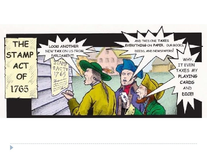 Uh oh! � The British Parliament determined that this debt should be paid by the American colonists, whose lands the British had been defending. � THIS was a change in the British government’s colonial policy. Before the French and Indian War, the British government ignored what was happening in the colonies and let them govern and tax themselves. After the Seven Years War, the British Parliament began to pass a series of laws that changed the relationship between the colonial assemblies and the Parliament. � Colonists believed it was the right of their colonial assemblies to impose taxes, not the right of the King or of Parliament, and they resisted this changed policy through protests and boycotts of British goods.