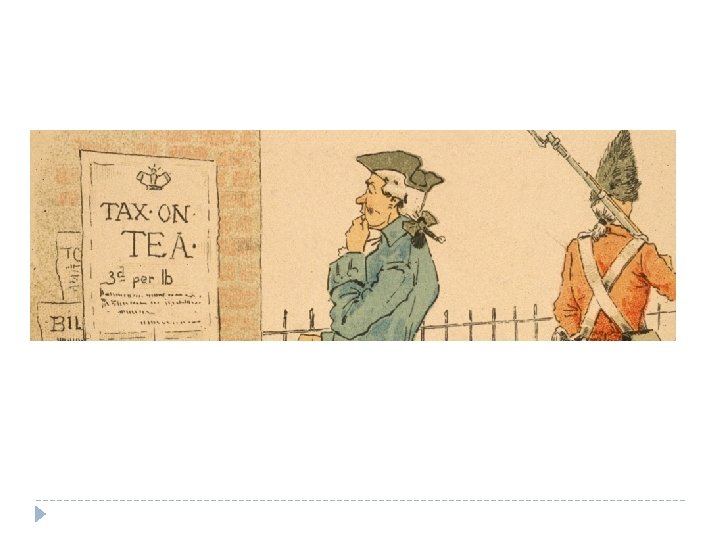 Look at it from their point of view! � Think about the activity that we did with the Stamp Act. Were you mad about Parliament’s tax on you? � The British weren’t directly taxing the colonists, but they were forcing the colonists to buy cheap tea from the East India Company and they had their own tax on their tea; which means that the colonists were STILL being taxed for cheap tea! � TURN AND TALK: What is your opinion? Would you be mad? Why? Support your answer. (30 seconds)