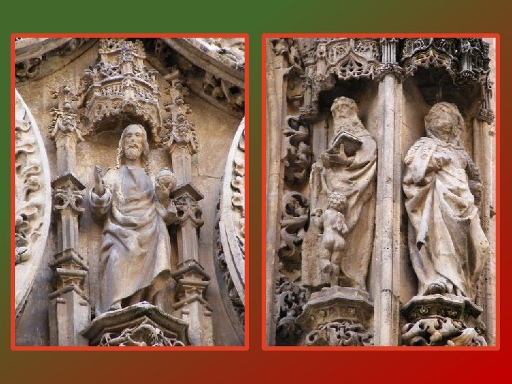 La façade présente trois portails très décoratifs qui ont été réalisés avec des marbres de différentes couleurs. Sur le portail central, entre les colonnes torses, un relief présente l’Incarnation, qui est le nom de la cathédrale.