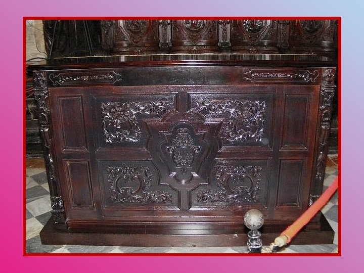 Les stalles baroques en acajou sculpté datent de 1750. Elles sont l’œuvre de Pedro Duque Cornejo.