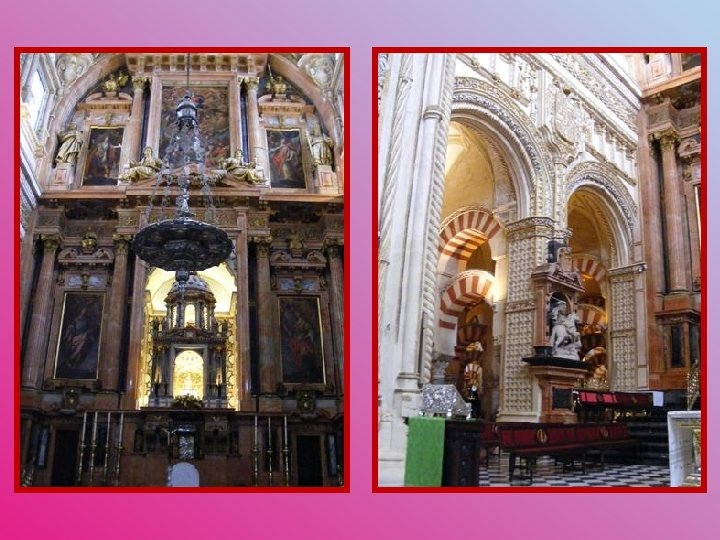 Après la Reconquista de Cordoue par le roi Ferdinand III, le 29 juin 1236, l’Église espagnole amorça la rechristianisation du territoire conquis. Des mosquées furent supprimées ou réaffectées au culte chrétien. Comme il aurait été impossible de détruire un bâtiment d’une telle envergure, la Grande Mosquée de Cordoue commença à subir des transformations et devint une église puis une cathédrale. Au 16 e siècle, malgré l’opposition du chapitre de la première cathédrale, l’évêque Alonso Manrique entreprit d’élever une cathédrale plus somptueuse au centre de la mosquée. Cette tâche fut confiée aux architectes Hernán Ruiz I, II et III, Diego de Praves et Juan de Ochoa qui démolirent une importante partie du centre de la mosquée, rompant ainsi la perspective de la «forêt de colonnes» . Cette cathédrale, qui allie les styles gothique, renaissance et baroque, se trouve comme «incrustée» à l’intérieur de la mosquée. Nous sommes donc en présence d’un des édifices les plus originaux qui soient au monde. Lorsque l’empereur Charles Quint visita l’édifice pour la première fois, il exprima des regrets pour cette transformation. Il déclara : «Vous avez détruit ce que l’on ne voit nulle part pour construire ce que l’on voit partout. » La partie la plus ancienne de la Grande Mosquée de Cordoue