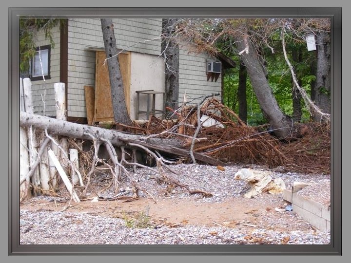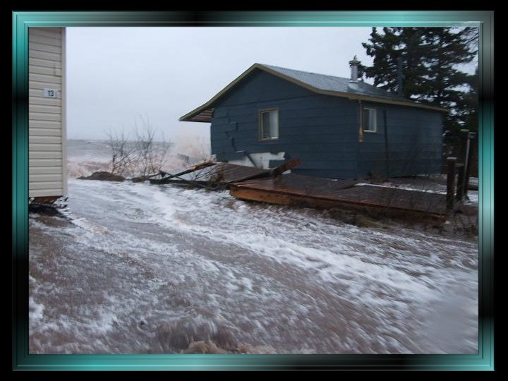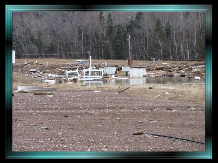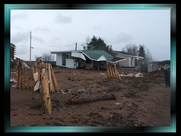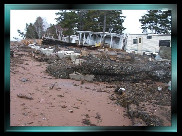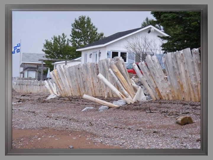 Constructions emportées par les flots , chalets et roulottes jetés par terre ou éventrés, terrains érodés : tout n’était plus que désolation. Dans le marais de Miguasha, une mer en furie avait transporté du bois, des pierres, des meubles, des appareils ménagers… Il faut le dire et le rappeler : à l’infinie tristesse des propriétaires riverains qui voyaient leurs propriétés détruites ou sévèrement endommagées (des propriétés qui, étant considérées comme des résidences secondaires, ne pouvaient bénéficier d’une aide gouvernementale ou des assureurs), venait s’ajouter l’absence de compassion et d’empathie des autorités gouvernementales québécoises qui interdisaient formellement aux gens éprouvés de réparer les dommages subis et les enjoignaient de laisser les lieux tels quels. Lors d’une assemblée, des fonctionnaires allèrent jusqu’à menacer ceux qui contreviendraient à leurs directives d’amendes et d’obligation de défaire leurs réparations…