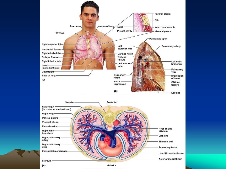 Plíce : • Hrudní dutiny samostatné , prostor oddělen mediastinem • Krytí: pohrudnice, poplicnice , pleurální dutina ( negativní atmosférický tlak) • Apex, laloky, segmenty, lalůčky , průdušinky , plicní sklípky • Alveolus: plicní kapilára+průdušinka+ surfaktant