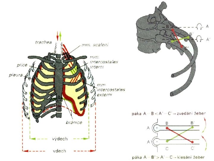 Hlavní nádechové svaly: bránice, zevní mezižeberní svaly Pomocné dýchací svaly: m. sternocleidomastoideus, skupina skalenových svalů Výdechové svaly: vnitřní mezižeberní svaly, svaly přední stěny břišní