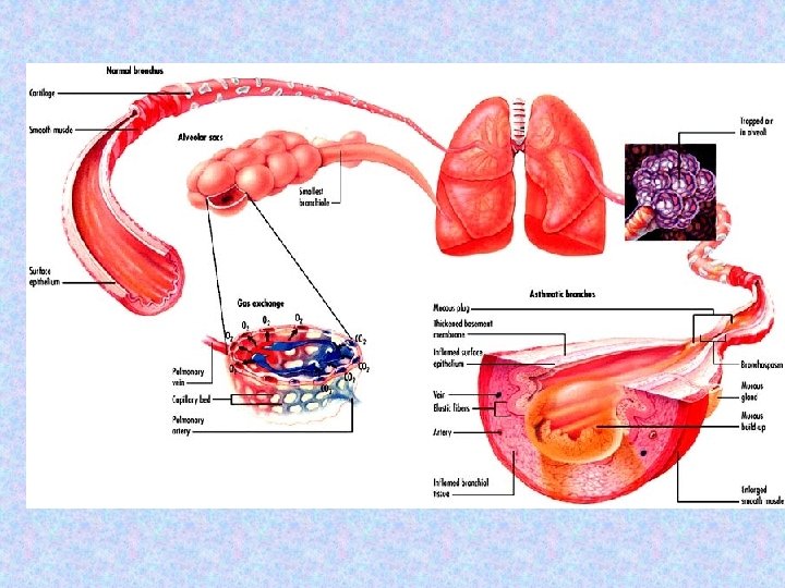 Hyperkapnie • Hyperkapnie je vzestup koncentrace oxidu uhličitého v krvi nebo ve tkáních, který je způsoben retencí CO 2 v těle • možné příčiny: celková alveolární hypoventilace (snížená ventilace plic nebo prodloužení mrtvého prostoru) • mírná hyperkapnie (5 -7 k. Pa) vyvolá stimulaci dechového centra (terapeutické využití: pneumoxid = směs kyslík + 2 -5% CO 2) • hyperkapnie kolem 10 k. Pa - narkotický účinek CO 2 – útlum dechového centra (předchází bolest hlavy, zmatenost, dezorientace, pocit dušnosti) • hyperkapnie nad 12 k. Pa – výrazný útlum dýchání – kóma až smrt