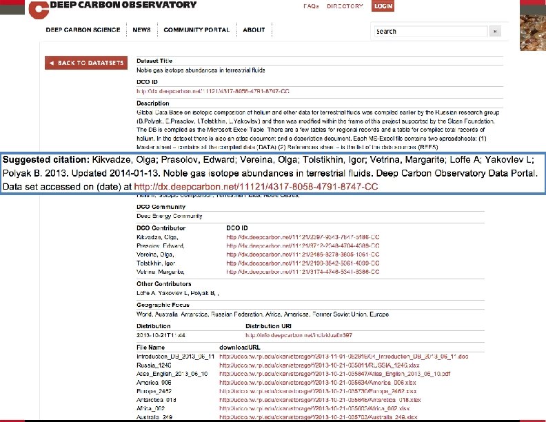 http: //deepcarbon. net/dco_datasets DCO Ontology Click on Title: “DCO Ontology” or https: //deepcarbon. net//dco_dataset_summary? uri=http: //info. deepcarbon. net/individual/n 5989