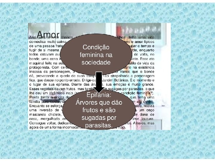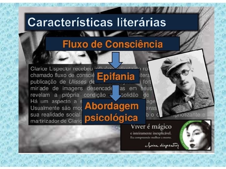 EPIFANIA É a descoberta da própria identidade partir de um estímulo externo (como a visão do cego mascando chicletes, no conto “Amor”) • As personagens, nesse momento, descobrem a própria essência.