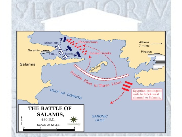 Tweede Perzische oorlog • • 480 v. Ch Koning Xerses Veldslag bij Thermopylae ( film 300) Perzen veroverden heel Griekenland behalve de Peloponesos. • Perzische vloot werd verslagen bij Salamis • Perzen werden definitief verslagen.