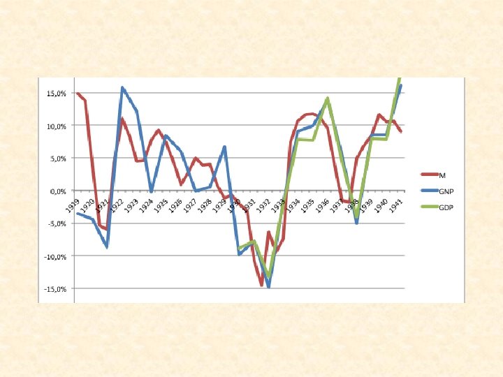 Of zat Keynes mis? • Geen depressie na WO-2 • Inflatie gedurende na-oorlogse recessies gaf aan dat er geld de economie in werd gepompt en dat hierdoor de uitgaven toenamen. Maar waarom was er dan een recessie? ? • Bovendien leidde het steeds maar meer geld de economie in pompen tot een steeds hogere inflatie. Maar als Keynes mis zat, wat was dan de oorzaak van de Grote Depressie? ?