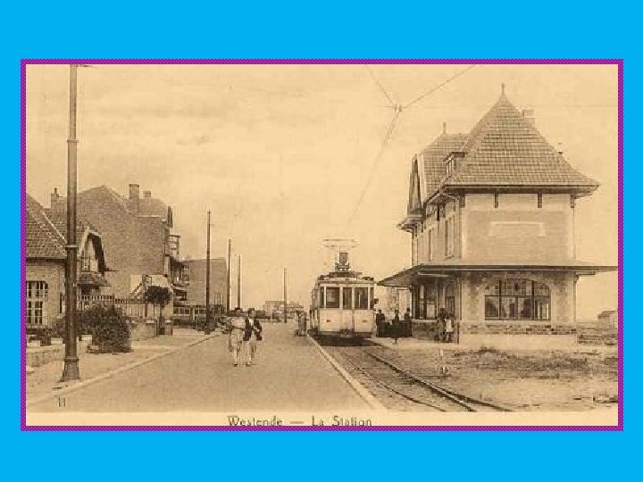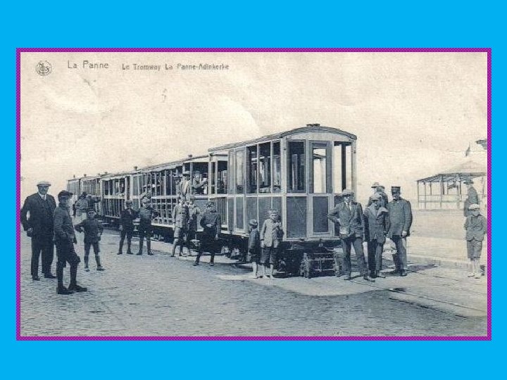 Geschiedenis De kusttram is nu onderdeel van De Lijn, maar is een overblijfsel van het Belgische streektramnet van de NMVB. De eerste streektramlijn aan de kust werd in 1885 aangelegd tussen Oostende en Nieuwpoort. Stad, langs de dorpen. Deze lijn werd op 18 juli 1886 verlengd tot Veurne langs Koksijde-dorp. De huidige route langs de badplaatsen werd pas later gebouwd, samen met de ontwikkeling van de badplaatsen. Het eerste deel was Oostende (Keizerskaai) - Middelkerke-Bad op 19 juli 1897. Deze tramlijn werd aangelegd en geëlektrificeerd door de maatschappij TEOL (overgenomen door de NMVB in 1904). Geleidelijk aan werden meer delen van de kustlijn gebouwd en werd de hoofdroute verlegd naar de kust. Arbeiders werken aan het tramspoor.