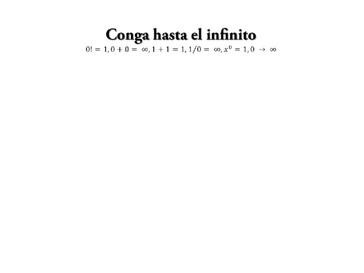 Esta es la conga de los numeritos, ven goza tu conga hasta el infinito. Esta es la conga únete al trencito, ven goza la conga de tres numeritos. El cero admirado hace un unito, y cero más cero es el infinito. El cero animado es uno bonito, y cero con cero da todo, todito. El uno más uno unen un buen rito, y el cero entre uno da todo, todito. El uno con uno oh verso unidito, y círculo abajo dota el infinito. El cero en potencia logra el mismo hito, y torsión de nada llega al infinito. El halito arriba confirma al santito, y cero trenzado es todo, todito.