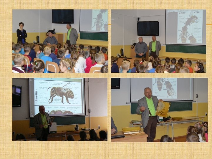 3. PREZENTÁCIE ŽIAKOV Pripraviť besedu dokážu aj naši žiaci – šiestaci: Igor Gábor 6. A a Tobiáš Pardel 6. A. Pripravovala ich pani učiteľka Mgr. Michaela Janckulíková. Úlohy sa zhostili výborne, však posúďte sami. Ich téma bola: „Včelie produkty“. Počet zúčastnených detí: 151