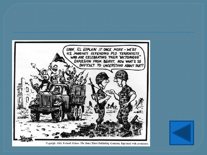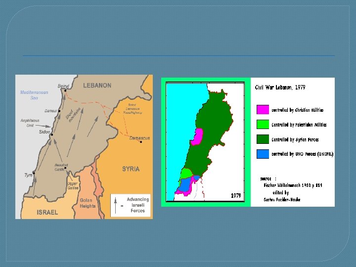 Eerst wantrouwen in het westen en dan gedeeltelijk succes -P. L. O. door V. N. erkend als enige vertegenwoordiger van het Palestijnse volk -P. L. O. als waarnemer toegelaten tot de V. N. (Arafat spreekt V. N. toe) maar westen blijft Israël steunen Camp David akkoorden gaven hoop, maar onderzoek liep op niets uit In 1982 valt Israël Libanon binnen (als reactie op de voortdurende aanvallen)→ -hoofdkwartier P. L. O. naar Tunis -macht P. L. O. neemt sterk af -burgeroorlog in Libanon verhevigt→V. S. grijpt in http: //youtu. be/H 9 p. L 1 Ig. TDw. M