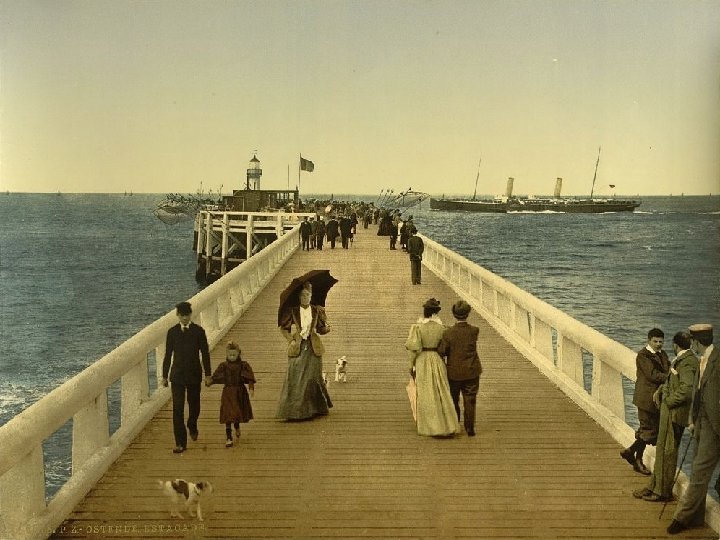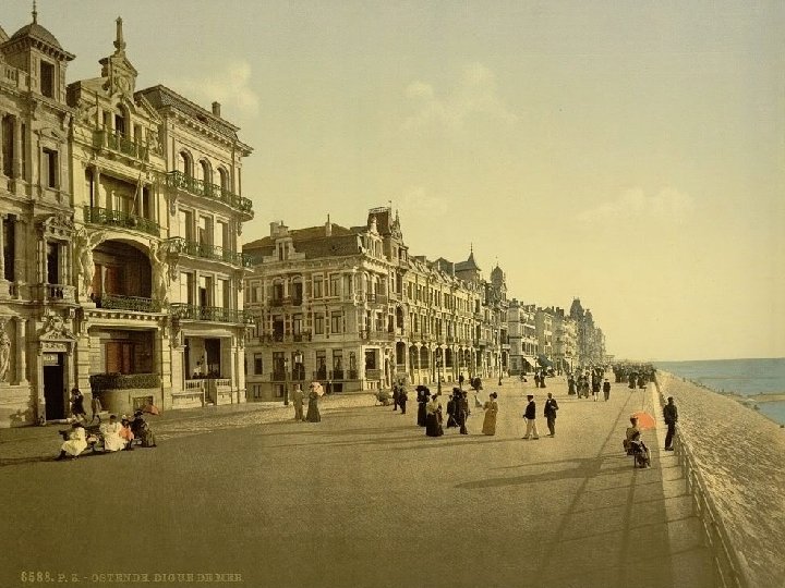 Oostende ontpopte zich tot een mondaine badplaats met wereldfaam. Leopold II besteedde de enorme winsten uit zijn infame rubberhandel om steden als Brussel en Oostende te verfraaien. En gebruikte zijn Congo kolonie als een bron van geschenken voor de lakeien van het regime. Op grote schaal kocht hij media en politici om ! Hij wilde Oostende uitbouwen tot de belangrijkste badstad van West-Europa. In 1905 vierde België zijn 75 ste verjaardag (? ) en naderden enkele prestigieuze projecten hun voltooiing. De corrupte Leopold II kwam ze persoonlijk inhuldigen. De Nieuwe Koninklijke Schouwburg ging open. Het grondig gerenoveerde Kursaal pakte uit met een uitgelezen programmatie, van Caruso tot Ernest van Dyck. De Sint-Petrus- en Pauluskerk werd ingewijd. Een volwaardig postgebouw stond in de steigers. Er werd met man en macht gewerkt aan de uitbreiding van de haven. De koninklijke baan tussen Oostende en Wenduine, de eerste geasfalteerde autoweg in België, werd afgewerkt.