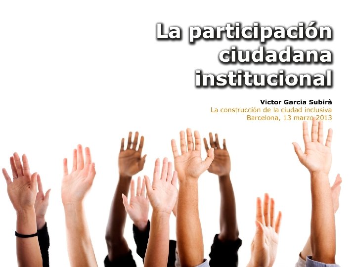 De qué hablaremos? 1. Qué entendemos por participación ciudadana institucional? 2. Cómo se ha aplicado aquí? 3. Algunos aprendizajes
