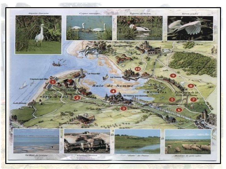 La richesse écologique de la Baie est due aux zones humides et à leur maintien. Ces canaux , fossés et mares sont un paradis pour les quelques 300 espèces qui font une halte migratrice où hivernent. A bord du train on aperçoit des hérons cendré, cygnes sauvages ou aigrettes garzettes Paysages entre St Valéry et Noyelles sur Mer. La baie est une vaste prairie où paissent les moutons de prés-salés et l’on peut voir aussi les chevaux rustiques à la robe dorée : ‘’ le Henson ‘’