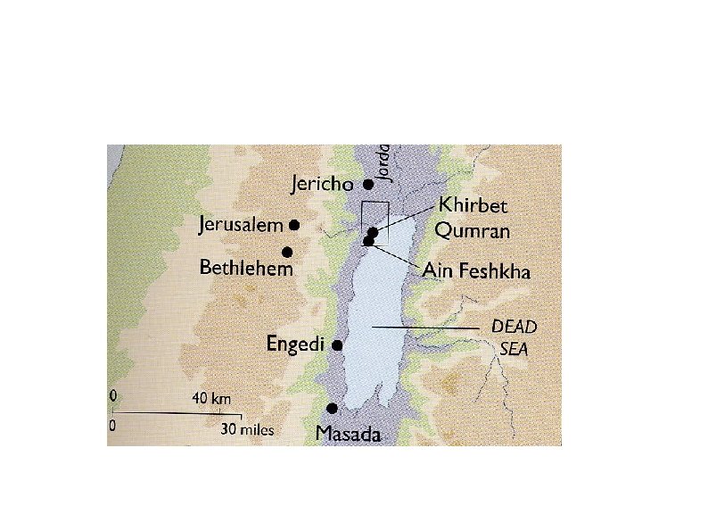 Essene Theory A Jewish sect ( with Pharisees & Saducees) ● Lived communally with long initiation times ● Communal meals ● Concerned with extreme piety and ritual purity (especially bathing) ● Studied scriptures and probably copied them ● Probably hid scrolls in caves in anticipation of Roman destruction of Qumran in 68 CE ●