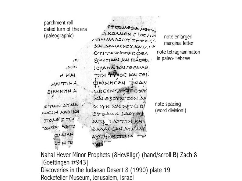 Other Manuscripts Scrolls from Dept of Antiquities of Jordan: ● Testamonia-Biblical Excerpts 4 Q 175 ● Isaiah Pesher(Commentary) 4 Q 162 Manuscripts from Russian National Library: ● Pentateuch fragments from about 1000 CE ● Nehemiah fragments 994 CE th century ● Torah Scroll 9 Ethiopic Manuscripts th and 18 th centuries ● Two Psalm books of the 17