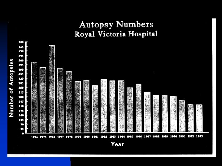 Falling Autopsy Rates: RVH 1998 DEATHS AUTOPSIE S RATE (%) ADULT INPATIENTS 721 92 12. 8% EMERGENC Y 43 3 7% INFANTS (OVER 500 g) 19 12 63% (figures from 1998)