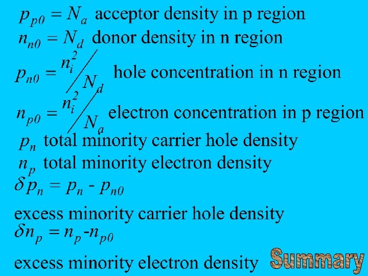 Currents – sum of hole and electron diffusion currents
